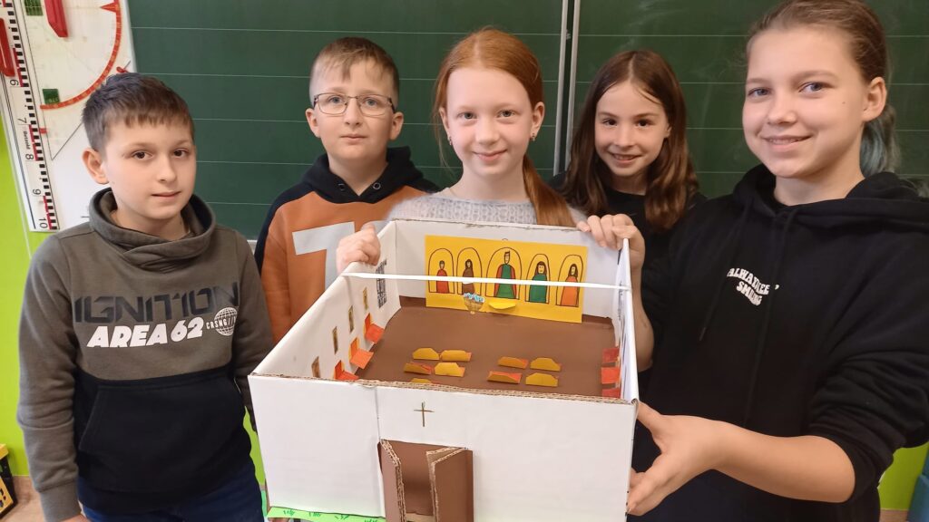Die Schülerinnen und Schüler der 3. Und 4. Kl haben sich im Religionsunterricht mit dem Thema die drei christlichen Konfessionen befasst. Sie haben Kirchen und Kircheninnenräume gestaltet. So wurde das Gelernte vertieft und anschaulich dargestellt.
