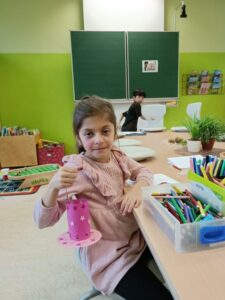 Im Rahmen einer kreativen Bastelstunde haben die Kinder im Hort gemeinsam Laternen gestaltet. Dabei konnten sie ihrer Fantasie freien Lauf lassen und verschiedene Materialien wie buntes Transparentpapier, Glitzer und Naturmaterialien verwenden. Mit Unterstützung der Betreuer*innen haben die Kinder zuerst eine Grundform erstellt und diese anschließend individuell verziert.