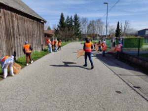 Am Freitag vor den Osterferien machten sich die Kinder der 3./4. Klasse gut ausgerüstet auf den Weg, um in Unterradlberg den Müll zu beseitigen, der von anderen achtlos weggeworfen wurde. Es wurden schon einige Säcke an der Kreuzung beim Bahnhof stehengelassen, weil sie dort schon so schwer waren. Am Weg zur Schule waren die neuen Müllsäcke wieder voll geworden.