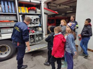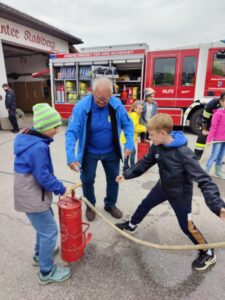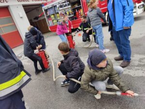 Um bei der Safety Tour im Mai gut gerüstet und vorbereitet zu sein, durften die Kinder der 3./4. Klasse bei der Feuerwehr St. Pölten Zielspritz-Übungen durchführen. Bei der Gelegenheit bekamen die Kinder auch einen Einblick in die Ausstattung der Feuerwehrautos.