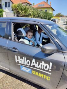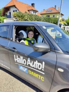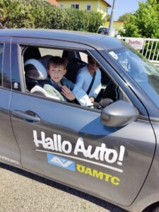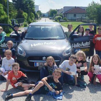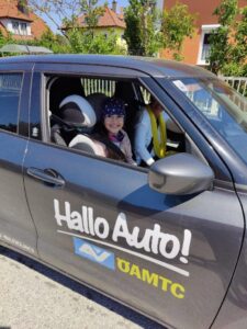 Am 12. Mai machten die Kinder bei der Aktion des ÖAMTC „Hallo Auto“ mit. Mit praktischen Übungen wurde den Kindern gezeigt, durch welche Faktoren der „Anhalteweg“ beeinflusst werden kann. Zusätzlich wurden wichtige Themen der Verkehrserziehung, wie z.B. Sichtlinien, Blickkontakt oder das Mitfahren im PKW, vermittelt. Das Highlight was das Mitfahren und Bremsen im ÖAMTC-Auto.