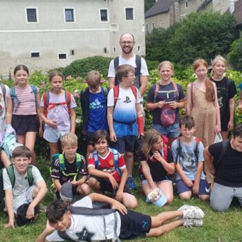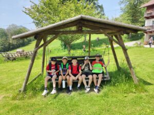 Von 10.6. bis 13.6.2025 fuhren die Kinder der 3./4. Klasse gemeinsam mit Christa Berger und Sabine Weiser mit der Himmelstreppe nach Wienerbruck auf den Bodenhof. Gleich am ersten Tag gab es unweit vom Bauernhof in der Ötschbasis einen Workshop zu Tieren in stehendem Gewässer. Nachdem alle den Ausblick vom Ötscherturm genossen hatten, konnten die Kinder bei herrlichem Wetter mit Cacher und Becherlupe nach Herzenslust im Tümpel Entdeckungen machen.