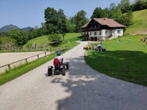 So wie an den anderen Tagen hatten die Kinder im Anschluss die Möglichkeit, die Zeit am Bodenhof frei zu gestalten. Hasen streicheln, Holzpferd reiten, Fußball spielen und Gokart fahren standen auf der Hitliste ganz oben.