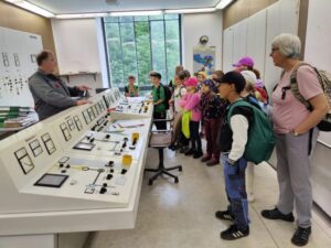 Am nächsten Tag waren die Kinder schon gespannt auf die Ötschergräben. Ziel war das Speicherkraftwerk, welches nach einem abenteuerlichen Fußmarsch erreicht wurde. Dort empfing uns schon Herr Digruber, der Kraftwerkwart, welcher uns durch das Kraftwerk führte und den Kindern sehr interessante Informationen zu Turbinen und Wasserkraft weitergab. Zuletzt wurden wir mit dem Schrägaufzug, der sämtliche Materialien und Personen zum und vom Kraftwerk transportiert, wieder hinaufgebracht. Auf der Wanderrunde stand als nächstes der Kaiserthron auf dem Programm. Von dort aus hat man sowohl eine wunderbare Aussicht auf die Berge als auch hinunter zum Speicherkraftwerk. Nach einer Stärkung setzten wir unsere Runde fort und erreichten nach kurzer Zeit auch schon wieder Wienerbruck. Nach einem köstlichen Mittagessen stand Reiten auf dem Programm. Fast alle Kinder und auch die mutigen Lehrerinnen probierten im Viereck ein paar Runden hoch zu Ross aus. Nach dieser schönen Erfahrung hatten die Kinder wieder die Möglichkeit sich frei am Bauernhof die Zeit zu vertreiben. Dazwischen konnte auch ein Zirben-Lavendel-Sackerl gestaltet und befüllt werden. Der Tag endete wieder mit Abendessen, Eintrag in die Projektmappen (diesmal im Appartement von den Burschen) und Auflösen der zweiten Challenge (Speicherkraftwerk-Quiz).